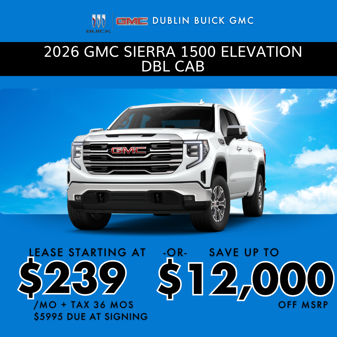 DISCLAIMER= Lease based on 2026 GMC SIERRA 1500 ELEVATION DBL CAB VIN # TZ221189. MSRP of $53,890. $5,995 DUE AT SIGNING, GMC Incremental CCR $1,000, GMC & Buick Lease Loyalty $3,250, Must have a 2019 or Newer GMC or Buick Lease in household. $9,612.08 capitalized cost reduction, $695 acquisition fee, plus taxes, titles, license and documentary service fees. No $0 security deposit required. Option to purchase at lease end $33,950.70. Lessee is responsible for $.25 per mile over 10,000 miles/year, excess wear, and a $495 termination fee. Expires 04/30/2026DISCLAIMER == Applies to New 2026 GMC SIERRA 1500 ELEVATION DBLCAB VIN # TZ221189. MSRP of $53,890. Dealer Discount $5,000, GMC CONSUMER CASH $1,750. GM BONUS CASH $1,750. GM TRADE-IN ALLOWANCE $3,500. Prices do not include government fees and taxes, any finance charge, any dealer document processing charge, any electronic filing charge and any emissions testing charge. Offer Expires 04/30/2026