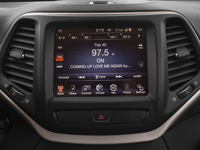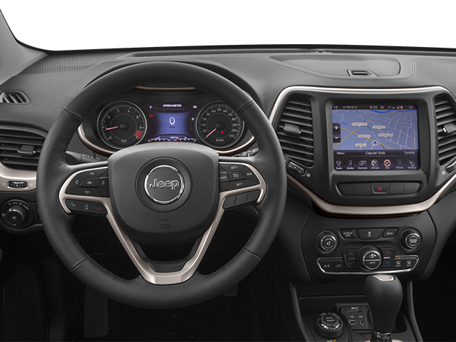 This 2014 Brilliant Black Crystal Pearlcoat Jeep Cherokee Latitude 4WD is well equipped and includes these features and benefits: Quick Order Package 25J, 17 x 7 Aluminum Wheels, 3.73 Axle Ratio, 4-Wheel Disc Brakes, 6 Speakers, ABS brakes, Air Conditioning, Alloy wheels, AM/FM radio, Anti-whiplash front head restraints, Brake assist, Bumpers: body-color, Cloth Low-Back Bucket Seats, Compass, Delay-off headlights, Driver door bin, Driver vanity mirror, Dual front impact airbags, Dual front side impact airbags, Electronic Stability Control, Four wheel independent suspension, Front anti-roll bar, Front Bucket Seats, Front Center Armrest, Front fog lights, Front reading lights, Illuminated entry, Knee airbag, Low tire pressure warning, Normal Duty Suspension, Occupant sensing airbag, Off Road Suspension, Outside temperature display, Overhead airbag, Overhead console, Panic alarm, Passenger door bin, Passenger vanity mirror, Power door mirrors, Power steering, Power windows, Radio data system, Radio: Uconnect 5.0 AM/FM/BT, Rear anti-roll bar, Rear reading lights, Rear seat center armrest, Rear side impact airbag, Rear window defroster, Rear window wiper, Remote keyless entry, Roof rack: rails only, Speed control, Speed-sensing steering, Split folding rear seat, Spoiler, Steering wheel mounted audio controls, Tachometer, Telescoping steering wheel, Tilt steering wheel, Traction control, Trip computer, Variably intermittent wipers, and Voltmeter.