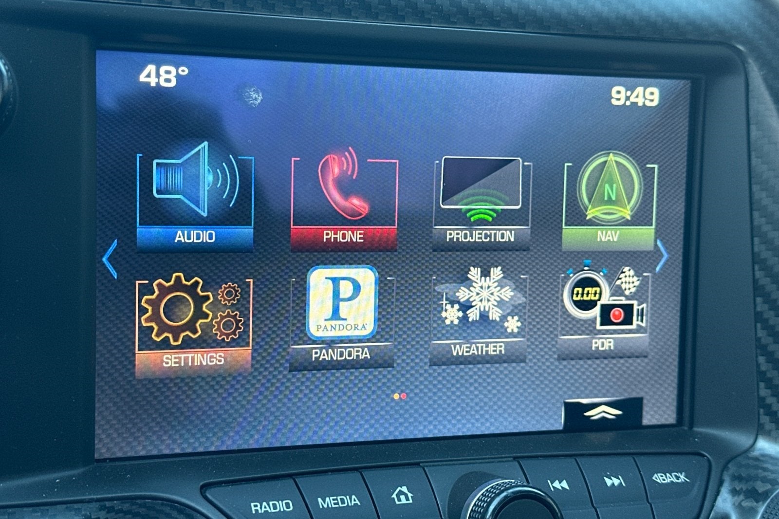 - Audio system, Chevrolet MyLink Radio with 8" diagonal color touch-screen, AM/FM stereo with seek-and-scan and digital clock, includes Bluetooth® streaming audio for music and select phones; voice-activated technology for radio and phone; featuring Apple CarPlay capability for compatible phone