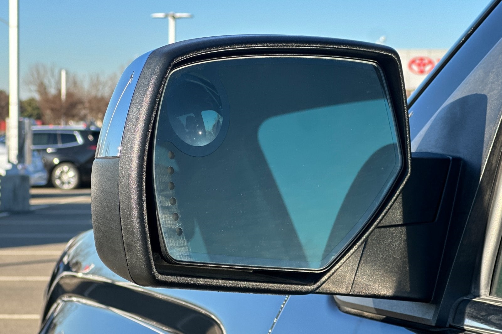 - Mirrors, outside chrome cap, heated power-adjustable, power-folding and driver-side auto-dimming with integrated turn signal indicators and puddle lamps (includes driver's side spotter mirror)
