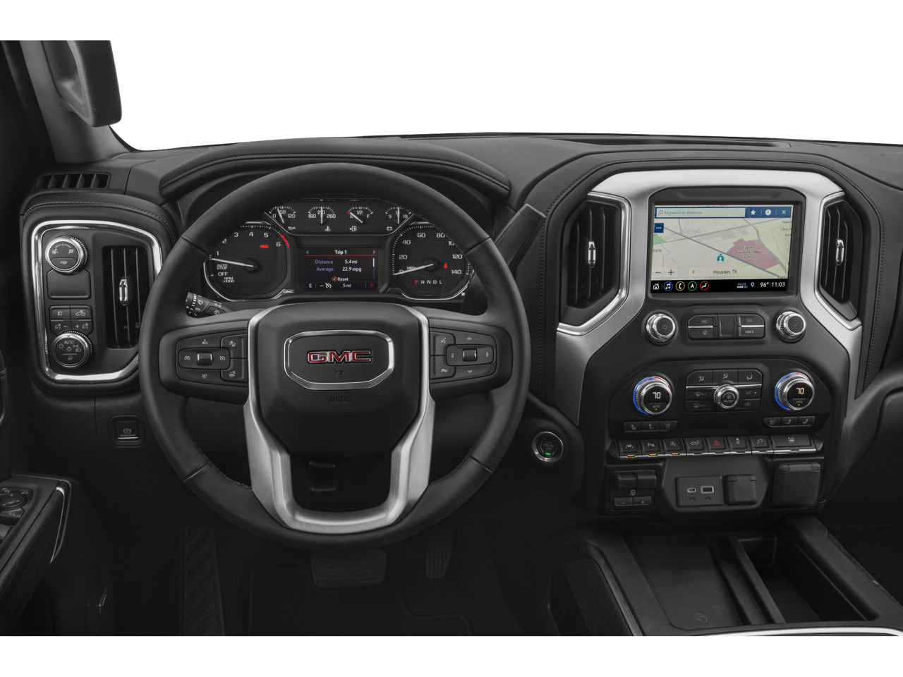 8-Speed Automatic, 4WD, Jet Black Leather. Dark Sky Metallic 2019 GMC Sierra 1500 SLT 4WD 8-Speed Automatic EcoTec3 5.3L V8Prices do not include government fees and taxes, any finance charges, any dealer document processing charge, any electronic filing charge, and any emission testing charge.