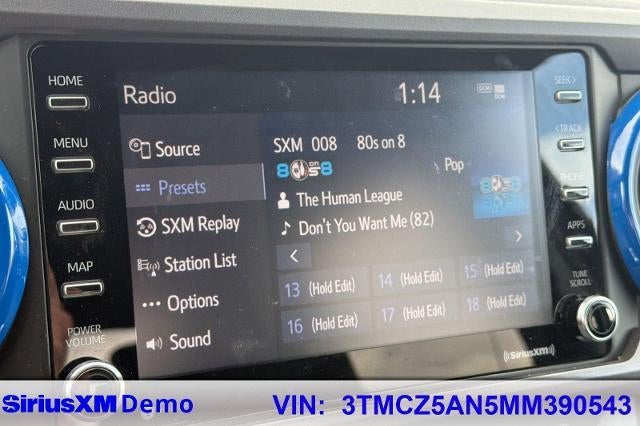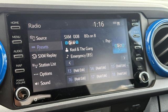 Backup Camera, Bluetooth®, Alloy Wheels, Audio Package, Climate Package, Comfort Package, Heat Package, Light Package, NON SMOKER, Power Mirror Package, Power Package, Security Package, Sound Package, Tacoma TRD Offroad V6, 4D Double Cab, 3.5L V6 PDI DOHC 24V LEV3-ULEV70 278hp, 6-Speed Automatic, 4WD, Midnight Black Metallic, Cement w/Fabric Seat Trim (FB), 120V/400W Deck Mounted AC Power, 6 Speakers, ABS brakes, Air Conditioning, All Weather Floor Liner & Door Sill Protector (TMS), Alloy wheels, AM/FM radio: SiriusXM, Anti-whiplash front head restraints, Apple CarPlay/Android Auto, Auto High-beam Headlights, Auto-dimming Rear-View mirror, Auto-Dimming Rearview Mirror w/HomeLink, Automatic temperature control, Axle Ratio: 3.91, Black Overfenders, Blind Spot Monitor w/Rear Cross Traffic Alert, Brake assist, Bumpers: body-color, Color-Keyed Rear Bumper, Door Edge Guards (TMS), Driver door bin, Dual front impact airbags, Dual front side impact airbags, Electronic Stability Control, Emergency communication system: Safety Connect with 1-year trial, Engine Immobilizer, Exterior Parking Camera Rear, Fabric Seat Trim (FD), Front anti-roll bar, Front Bucket Seats, Front Center Armrest, Front dual zone A/C, Front reading lights, Front Seats, Front wheel independent suspension, Heated door mirrors, Heated Front Seats, Illuminated entry, Knee airbag, Leather Shift Knob, LED Daytime Running Lights & Fog Lights, Low tire pressure warning, Mesh Front Grille, Mini Tie Downs w/Hooks (TMS), Mudguards (TMS), Occupant sensing airbag, Outside temperature display, Overhead airbag, Overhead console, Panic alarm, Passenger door bin, Power door mirrors, Power driver seat, Power Sliding Rear Window w/Privacy Glass, Power steering, Power windows, Radio: AM/FM Radio, Radio: Premium w/AM/FM/Nav/App Suite, Rear Parking Assist Sonar, Rear step bumper, Remote keyless entry, Security system, Smart Key w/Push Button Start, Speed control, Speed-sensing steering, Split folding rear seat, Steering wheel mounted audio controls, Tachometer, Technology Package, Telescoping steering wheel, Tilt steering wheel, Traction control, TRD Off Road Package, TRD Shift Knob (TMS), Trip computer, Truck Bed D-Rings (TMS), Turn signal indicator mirrors, Variably intermittent wipers. Midnight Black Metallic 2021 Toyota Tacoma TRD Off-Road V6 4WD 6-Speed Automatic 3.5L V6 PDI DOHC 24V LEV3-ULEV70 278hp