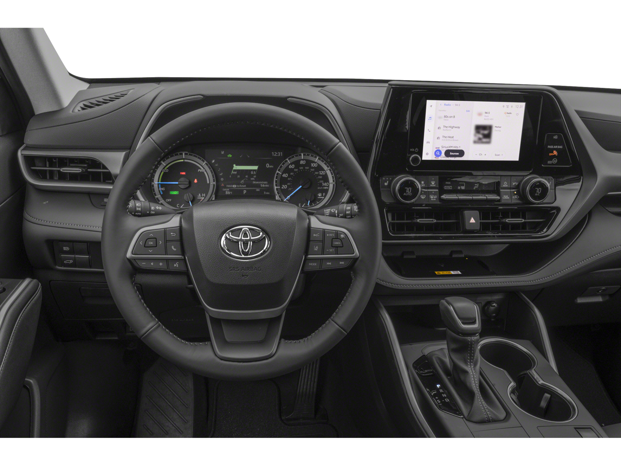 This 2023 Magnetic Gray Metallic Toyota Highlander Hybrid XLE FWD is well equipped and includes these features and benefits: 2.5L I4 PDI Hybrid DOHC 16V LEV3-SULEV30, 18 Machined Alloy Wheels, 3rd row seats: split-bench, 4-Wheel Disc Brakes, 6 Speakers, ABS brakes, Air Conditioning, Alloy wheels, AM/FM radio: SiriusXM, Apple CarPlay/Android Auto, Auto High-beam Headlights, Auto-dimming Rear-View mirror, Automatic temperature control, Axle Ratio: TBD, Brake assist, Bumpers: body-color, Delay-off headlights, Driver door bin, Driver vanity mirror, Dual front impact airbags, Dual front side impact airbags, Electronic Stability Control, Emergency communication system: Safety Connect (up to 10-year trial subscription), Exterior Parking Camera Rear, Four wheel independent suspension, Front anti-roll bar, Front Bucket Seats, Front Center Armrest, Front dual zone A/C, Front fog lights, Front reading lights, Fully automatic headlights, Garage door transmitter: HomeLink, Heated door mirrors, Heated Front Bucket Seats, Heated front seats, Illuminated entry, Knee airbag, Leather Shift Knob, Leather steering wheel, Low tire pressure warning, Occupant sensing airbag, Outside temperature display, Overhead airbag, Overhead console, Panic alarm, Passenger door bin, Passenger vanity mirror, Power door mirrors, Power driver seat, Power Liftgate, Power moonroof, Power passenger seat, Power steering, Power windows, Radio: 8 Toyota Audio Multimedia, Rear air conditioning, Rear anti-roll bar, Rear reading lights, Rear window defroster, Rear window wiper, Reclining 3rd row seat, Remote keyless entry, Roof rack: rails only, Security system, SofTex Seat Trim, Speed control, Speed-sensing steering, Split folding rear seat, Spoiler, Steering wheel mounted audio controls, Telescoping steering wheel, Tilt steering wheel, Traction control, Trip computer, Turn signal indicator mirrors, and Variably intermittent wipers. 2.5L I4 PDI Hybrid DOHC 16V LEV3-SULEV30.