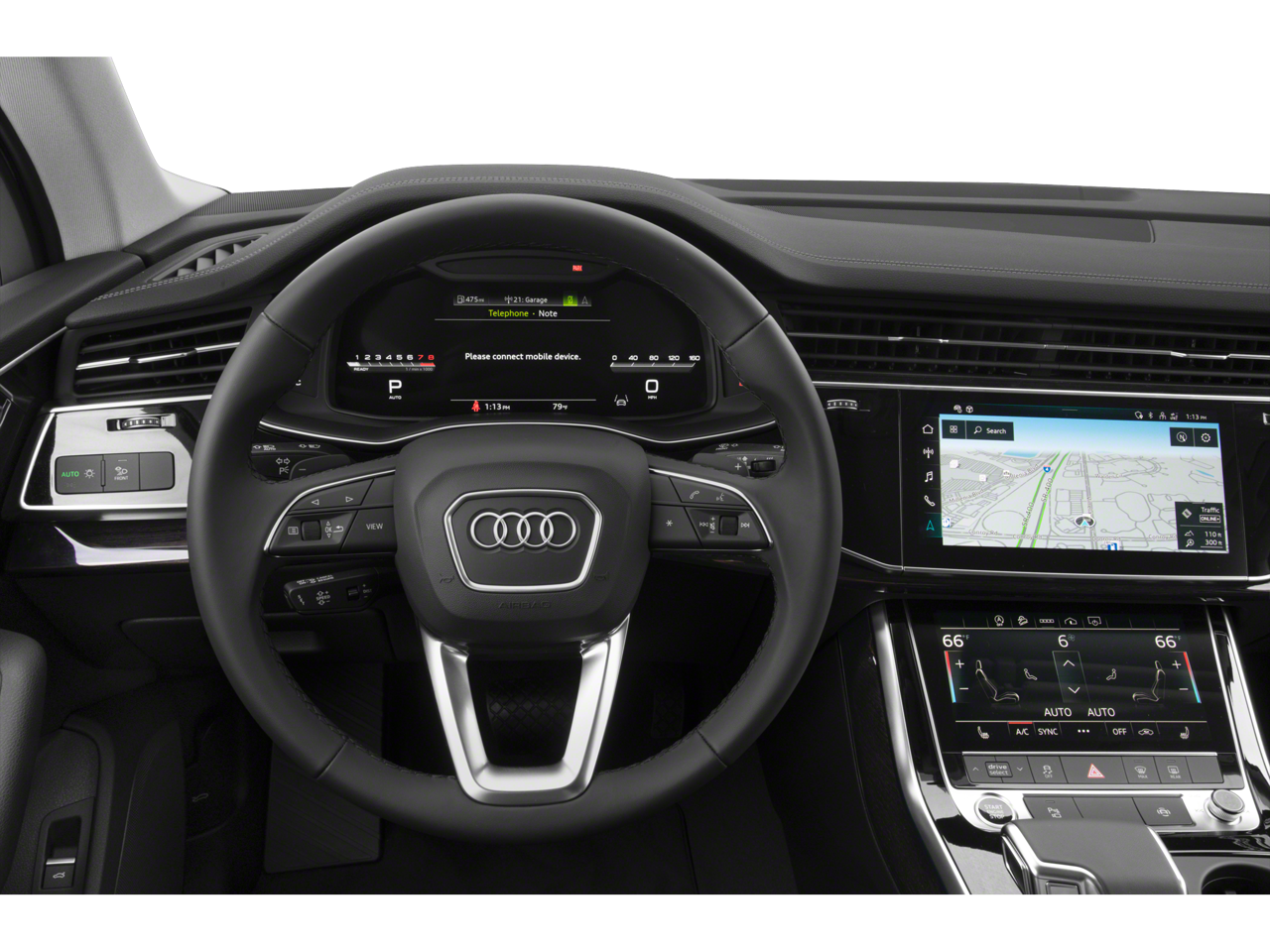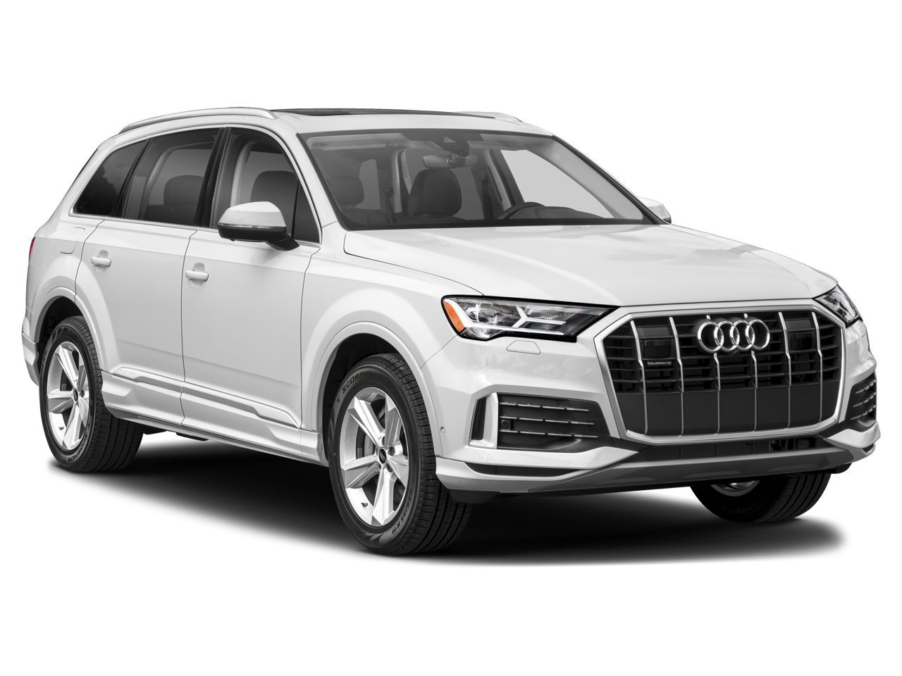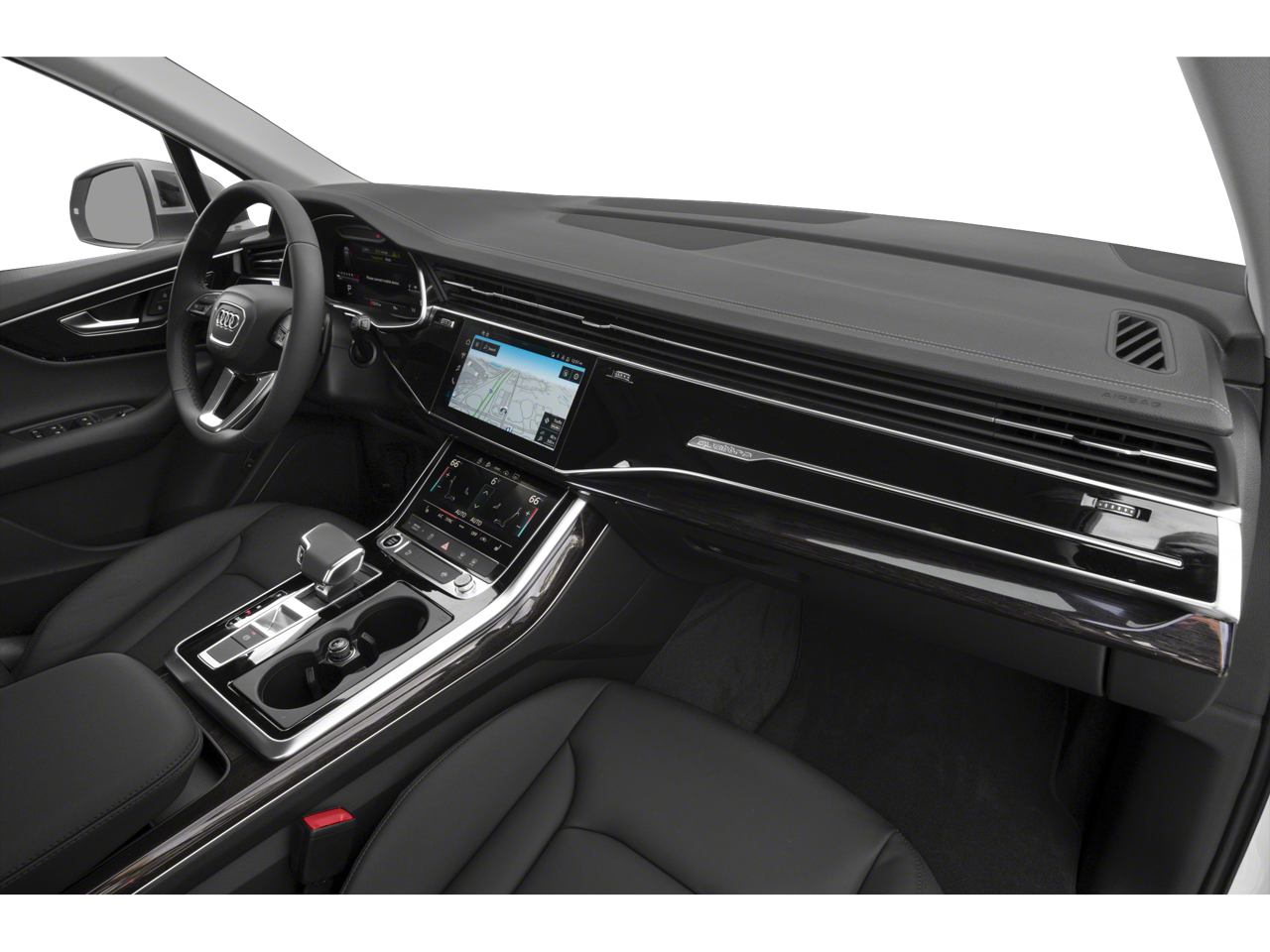 This 2024 Audi Q7 55 Premium Plus AWD is well equipped and includes these features and benefits: 10 Speakers, 3.204 Axle Ratio, 3rd row seats: bench, 4-Wheel Disc Brakes, ABS brakes, Air Conditioning, Alloy wheels, AM/FM radio: SiriusXM w/ 360L, Auto High-beam Headlights, Auto-dimming door mirrors, Auto-dimming Rear-View mirror, Automatic temperature control, Brake assist, Bumpers: body-color, Compass, Delay-off headlights, Driver door bin, Driver vanity mirror, Dual front impact airbags, Dual front side impact airbags, Electronic Stability Control, Emergency communication system: Audi connect CARE, Exterior Parking Camera Rear, Four wheel independent suspension, Front anti-roll bar, Front Bucket Seats, Front Center Armrest, Front dual zone A/C, Front fog lights, Front reading lights, Fully automatic headlights, Garage door transmitter: HomeLink, Genuine wood door panel insert, Heated door mirrors, Heated Front Bucket Seats, Heated front seats, Illuminated entry, Leather Seating Surfaces, Leather Shift Knob, Leather steering wheel, Low tire pressure warning, Memory seat, Navigation system: Audi MMI Navigation plus with Touch Response, Occupant sensing airbag, Outside temperature display, Overhead airbag, Overhead console, Panic alarm, Passenger door bin, Passenger vanity mirror, Power door mirrors, Power driver seat, Power Liftgate, Power moonroof: Panoramic, Power passenger seat, Power steering, Power windows, Radio data system, Radio: Audi Sound System, Rain sensing wipers, Rear air conditioning, Rear anti-roll bar, Rear fog lights, Rear reading lights, Rear seat center armrest, Rear side impact airbag, Rear window defroster, Rear window wiper, Reclining 3rd row seat, Remote keyless entry, Security system, Speed control, Speed-sensing steering, Split folding rear seat, Spoiler, Steering wheel memory, Steering wheel mounted audio controls, Tachometer, Telescoping steering wheel, Tilt steering wheel, Traction control, Trip computer, Turn signal indicator mirrors, Variably intermittent wipers, and Wheels: 19 5-Arm-Star Design.