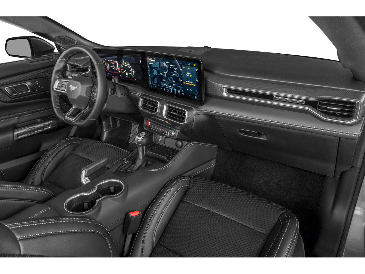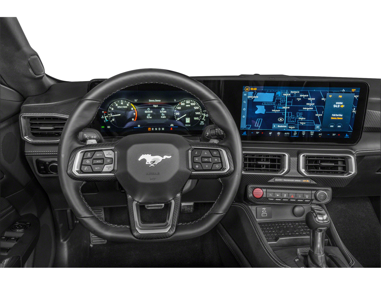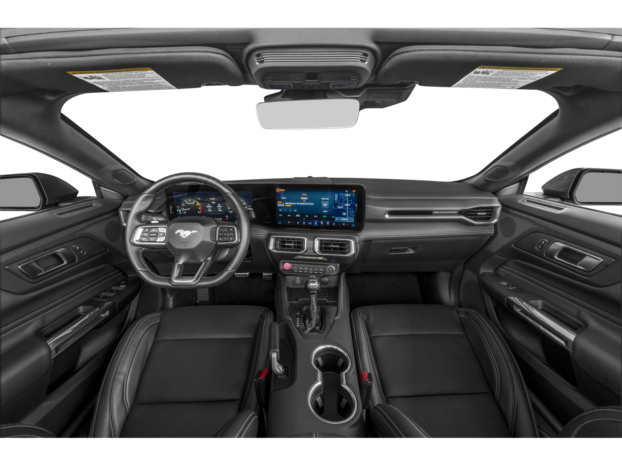 This 2024 Shadow Black Ford Mustang EcoBoost Premium RWD is well equipped and includes these features and benefits: 4-Wheel Disc Brakes, 9 Speakers, ABS brakes, Air Conditioning, Alloy wheels, AM/FM radio: SiriusXM with 360L, AM/FM Stereo, Auto High-beam Headlights, Automatic temperature control, Brake assist, Bumpers: body-color, Compass, Convertible roof lining, Delay-off headlights, Driver door bin, Driver vanity mirror, Dual front impact airbags, Dual front side impact airbags, Electronic Stability Control, Emergency communication system: 911 Assist, Exterior Parking Camera Rear, Four wheel independent suspension, Front anti-roll bar, Front Bucket Seats, Front Center Armrest, Front dual zone A/C, Front reading lights, Fully automatic headlights, Glass rear window, Heated front seats, Illuminated entry, Knee airbag, Leather Shift Knob, Low tire pressure warning, Occupant sensing airbag, Outside temperature display, Overhead console, Panic alarm, Passenger door bin, Passenger vanity mirror, Power convertible roof, Power door mirrors, Power driver seat, Power steering, Power windows, Radio data system, Rain sensing wipers, Rear anti-roll bar, Rear Parking Sensors, Rear window defroster, Remote keyless entry, Security system, Speed control, Speed-sensing steering, Speed-Sensitive Wipers, Sport steering wheel, Steering wheel mounted audio controls, SYNC 4.0 QNX, Tachometer, Telescoping steering wheel, Tilt steering wheel, Traction control, Trip computer, Variably intermittent wipers, Voltmeter, and Wheels: 18 x 8 Machined-Face Aluminum.