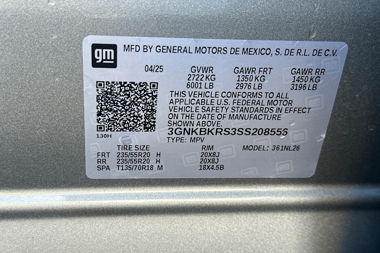 - Tires, P235/55R20 all-season blackwall